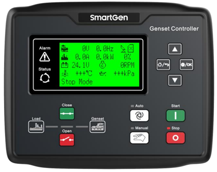 The controller is the brains monitoring all aspects of the generator. The Smartgen controller monitors engine temperature, water temperature, engine RPM, as well as Volts, Hertz, Amps and many other parameters that only a Smartgen generator controller can.